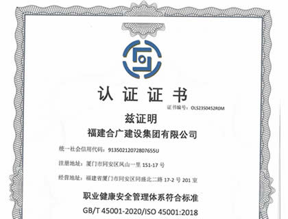 福建合廣建設集團有限公司,注冊資本5188萬元人民幣,公司位于廈門市同安區鳳山一里151-17號。本公司成立于2013年,公司具備市政公用工程、水利水電工程、房屋建筑工程、公路工程、園林綠化等多專業施工資質。企業從業人員100多人,各類專業技術人員70多人,其中高級職稱8人,中級職稱40多人,一級建造師6人,二級建造師15多人。